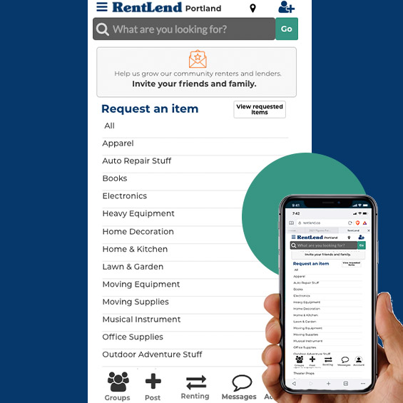 Save money by renting instead of buying. Make money by posting items you have for others to rent.